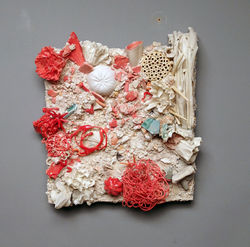 at Watershed Center for the Ceramic Arts, Newcastle, ME, using collected, slip dipped and fired fragments from workshop participants throughout the week.